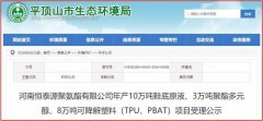 2019年12月13日,平頂山市生態環境局發布河南恒泰源聚氨酯有限公司年產10萬噸鞋底原液、3萬噸聚酯多元醇、8萬噸...