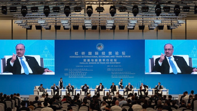 2018年11月5日,上海,中國國際進口博覽會。 沙特基礎工業副主席兼首席執行官Al-Benyan在虹橋國際經濟貿易論壇(Hietf)期間再...