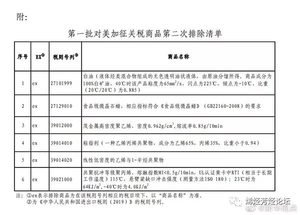 茂金屬HDPE、聚丙烯等6類化工產品不再加征進口關稅!