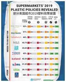 ????????在2019年減廢表現(xiàn)排行榜中,Waitrose和Morrisons在減少整體塑料足跡方面表現(xiàn)最佳,他們致力于推廣無包裝和可重復使用解決方。
