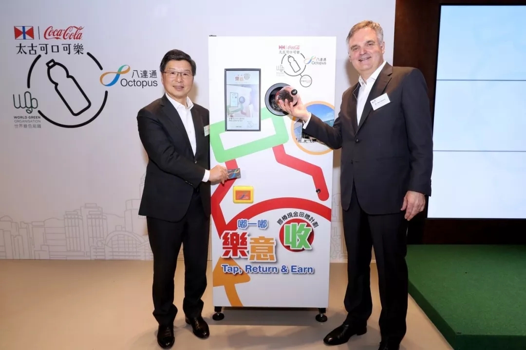 可口可樂在香港推出了塑料瓶回收現金回贈計劃,消費者每收集一個塑料瓶可獲得$0.2港元回贈