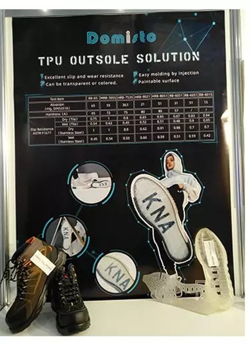 ????????除此之外,南通德億還推出了可以替代橡膠作為鞋大底,具備優秀的干、濕止滑和耐磨性能的DOMISTO TPU,以及Delastic超臨界物理發泡TPU中底解決方案。