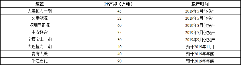 ????????2019年國(guó)內(nèi)PP裝置新增產(chǎn)能匯總