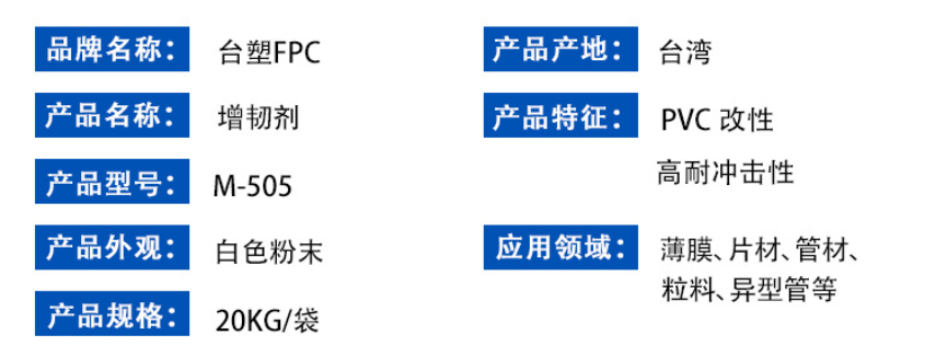 臺(tái)塑M-505增韌耐沖擊改質(zhì)劑,是用于硬質(zhì)和半硬質(zhì)PVC制品,如果PVC與M-505混合,具有以下特性: