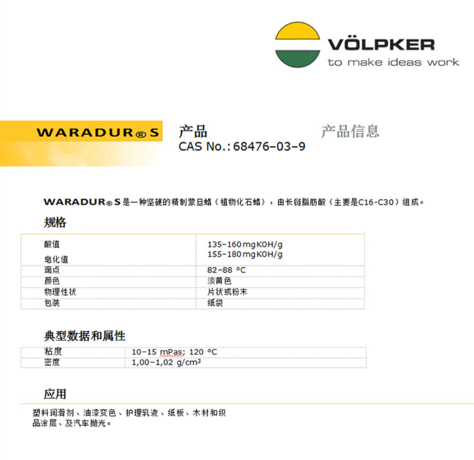 德國沃卡VOELPKER WARADUR S蠟 皂化蒙旦蠟 片狀工程塑料