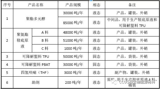 建設(shè)規(guī)模:年產(chǎn)10 萬噸鞋底原液、3 萬噸聚酯多元醇、8 萬噸可降解塑料(5萬噸/年TPU、3萬噸/年P(guān)BAT)