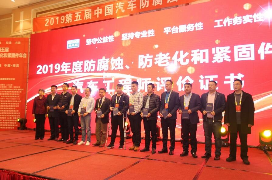 PPG大中華區(qū)一般工業(yè)漆高級(jí)商務(wù)總監(jiān)王華(右四)與PPG中國(guó)區(qū)電泳涂料技術(shù)服務(wù)經(jīng)理歐陽(yáng)澤華(右三)在第五屆中國(guó)汽車防腐蝕老化和緊固件年會(huì)中榮獲高級(jí)工程師專業(yè)證書