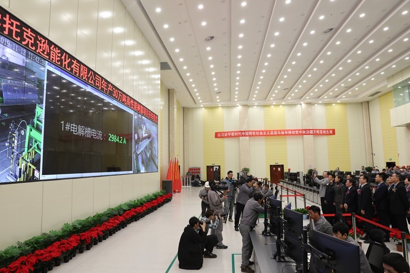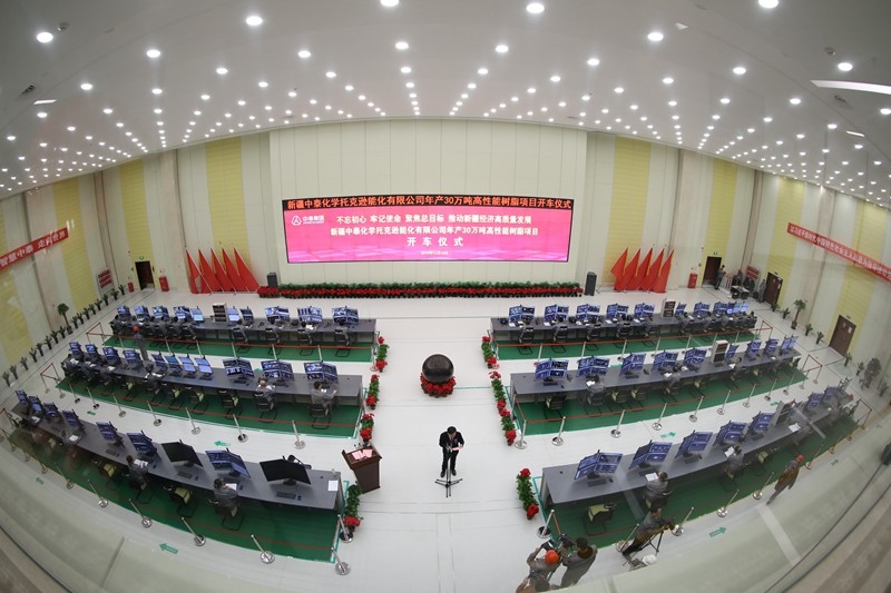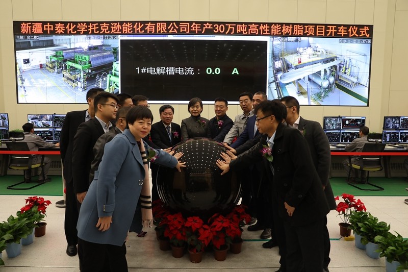 新疆中泰化學托克遜能化有限公司年產30萬噸高性能樹脂項目開車儀式現場