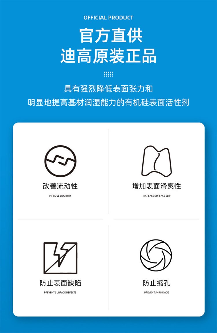 迪高TEGO Glide 410流平劑極佳的滑爽性和防縮孔效果。是一種高效產(chǎn)品,可用于多種涂料和油墨。