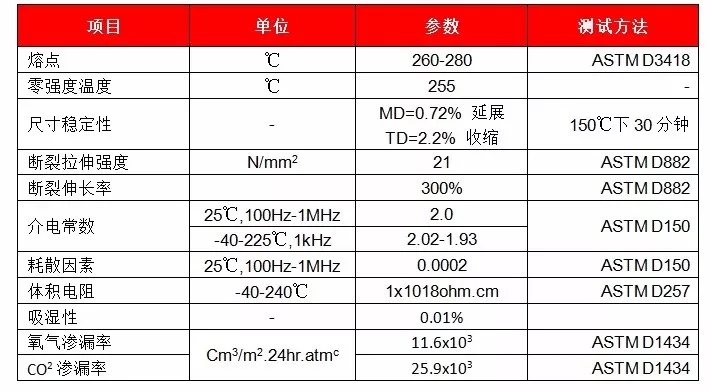 ????????如下是某品牌FEP樹脂薄膜的性能
