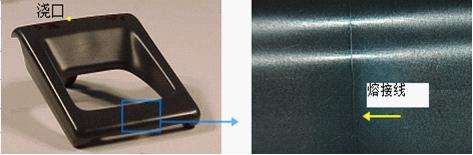 ????????1.?熔接痕處氣泡的形成是由于當兩股熔料匯流時,所包圍的氣體沒有及時排除,而留在了塑件內部,在熔接痕表面形成凹坑,可以通俗地稱之為“困氣”。