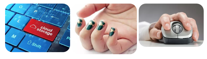 ????????鍵盤按鍵、電腦箱體、打印機蓋、鼠標、打印機或傳真機紙張支架、噪聲擋板、遮陽蓬、化妝品瓶、人造指甲。