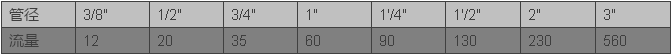 ????????流量與管徑之間的關系表: